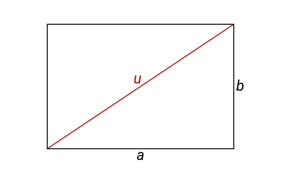 Pokud v rovině chceme spočítat například délku úhlopříčky u obdélníku se stranami a, b – viz následující obrázek:
